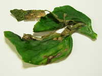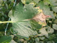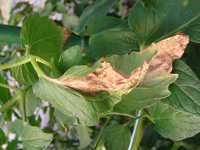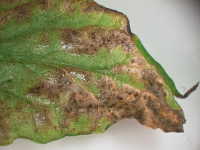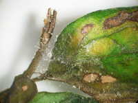 被害:果実、茎、葉に灰色かびを密生した病斑を生ずる。
