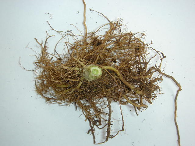 褐色根腐病 萎れ株の根(土を落とした状態)