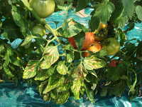 欠乏症状:マグネシウムは生体内で再移動しやすい要素のため、通常下位葉から葉脈間黄化が現れ、進行すると壊死する。
