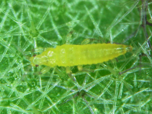 ミカンキイロアザミウマ2齢幼虫(体長0.9mm)