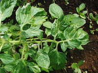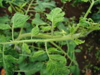 被害:葉に濃淡モザイク、奇形、萎縮を生じる。