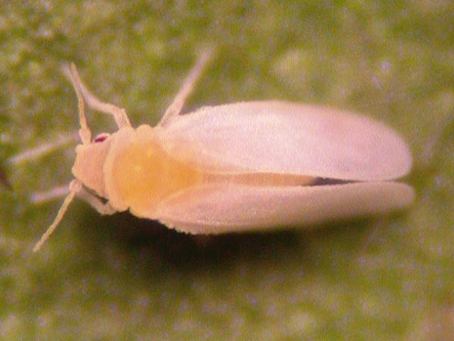 ウイルスを媒介するタバココナジラミ成虫(全長1.2mm)