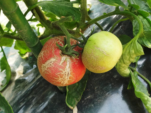 裂果 放射状のひびと細かい同心円状のひび