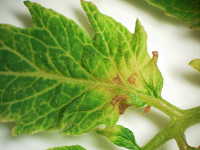 葉の一部が黄化し、縁が褐変