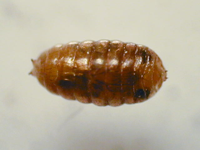 トマトハモグリバエ蛹(体長1.7mm、羽化直前)