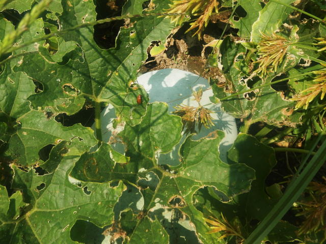 ウリハムシ成虫と食害葉