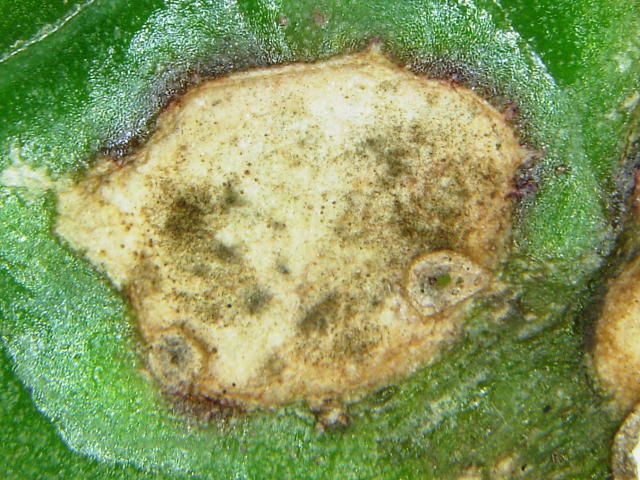 アルタナリア属菌による葉枯れ 楕円形病斑