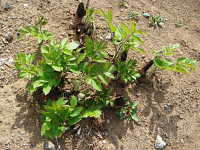 | ウドは5月に植え付け、株を充実させ、翌年4月に伸びた若い芽や茎を食用にする。 |