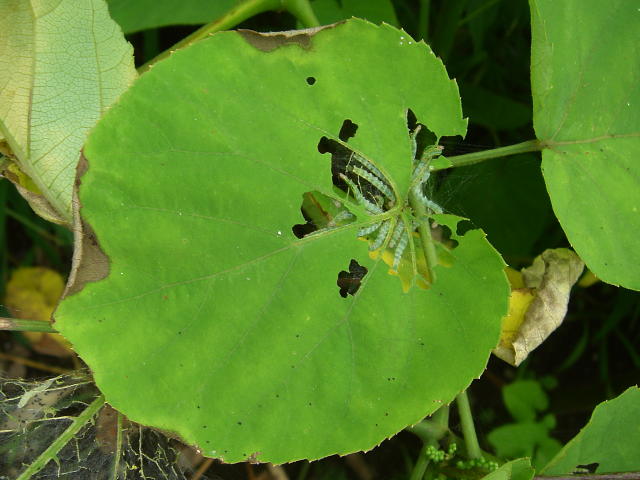 ウドノメイガ 幼虫による被害葉