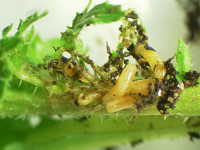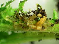 被害:幼虫による茎葉の食害