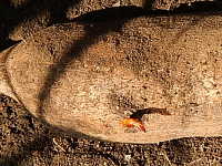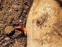 | 発生時期:4月 被害:マルクビクシコメツキやクロクシコメツキの幼虫であるハリガネムシが、イモに直角に円形の小さな穴をあけて食害する。 |