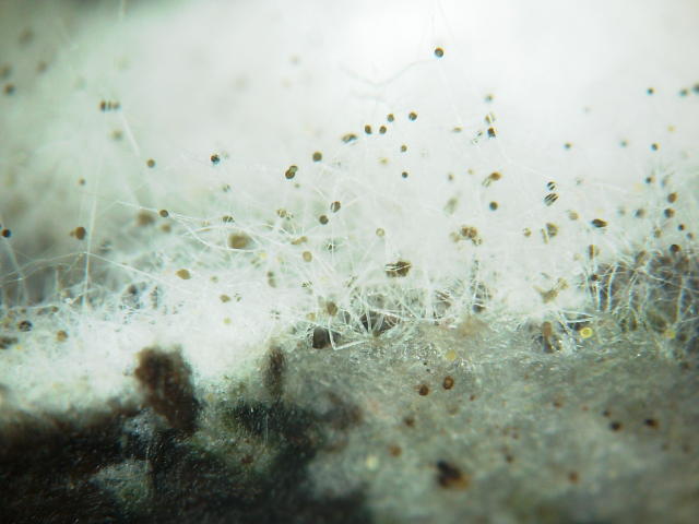 軟腐病 白い菌糸と黒い胞子のう