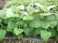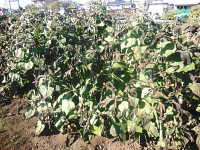 ヤーコンは5月に苗を定植し、11月にイモ(塊根)を収獲する。