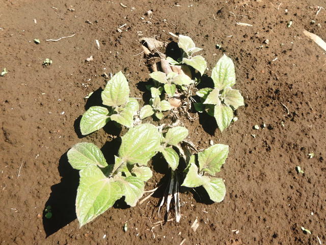 前年のイモから発芽(5月7日)