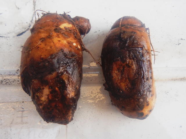 褐色腐敗病 イモが陥没・黒変