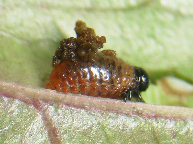 ヤマイモハムシ中齢幼虫(体長4mm) 糞を背負う