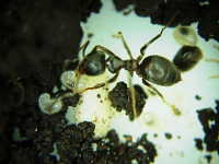 | 発生時期:周年 出現:畑内に巣くい、不快である。 食性:肉食傾向が強く、他の昆虫やミミズなどを襲って餌とする。 生態:石や落ち葉の下などに営巣する。一つの巣に複数の女王がいる多女王制をとり、6〜9月に結婚飛行が行われる。 |