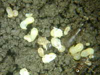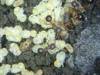 働きアリと蛹(体長2mm)