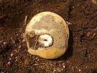 被害:幼虫によるイモの食害