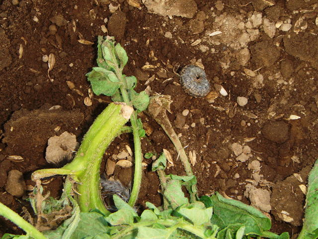 カブラヤガ 老齢幼虫と被害茎
