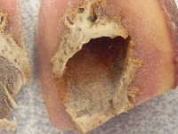 発生原因:L玉が2L玉に急速に肥大する時に、中心部が引き裂かれて発生。