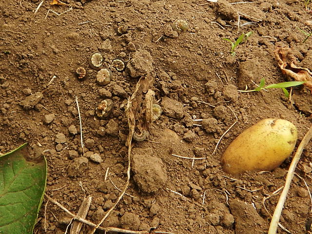 ヨトウムシ 垂れた茎葉の下には多数の幼虫がいた