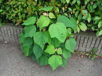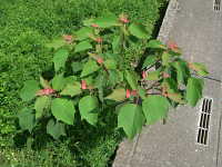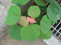 生育場所:道ばた、空き地など 特徴:葉は丸く、新芽が赤い。生長が速い樹木。