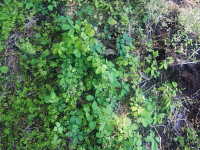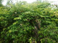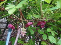 | つる性の落葉低木 草丈:100cm〜200mm 花期:4〜5月 生育場所:日当たりのよい山野など 特徴:葉が楕円形の小葉5枚の掌状複葉。果実は食用される。 名前の由来:果実が熟すと縦に割れて、白く甘い果肉と黒い種子が見えることから、「 |