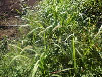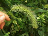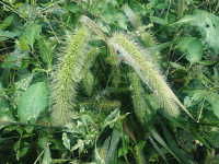 | 1年草 草丈:40cm〜120cm 花期:9月〜11月 生育場所:空き地、畑地など 特徴:円柱形の花序で長くて垂れ、小穂が大きく刺毛が長い。草丈も高い。 名前の由来:秋に開花するエノコログサであるから。 |