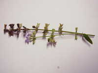 | 多年草 草丈:20cm〜80cm 花期:7月〜11月 生育場所:林縁、山野の道ばたなど 特徴:10〜25cmの花穂に輪状に薄紫色を付ける。萼が輪状に残り、中に分果ができる。葉は奇数羽状複葉。 名前の由来:古くは集合した軍隊を「タムラ(党)」と言い、秋の草原に花が群れ咲く様子から「アキノタムラソウ」と名付けられた。 |