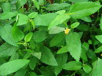 特徴:葉が狭卵型で、目立たない黄色い5弁花が咲く。熱帯アメリカ原産の帰化植物。