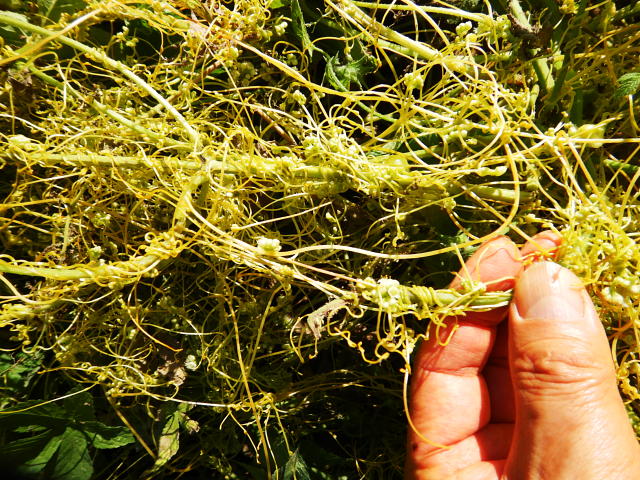 アメリカネナシカズラ ヤブガラシの茎にからみつく
