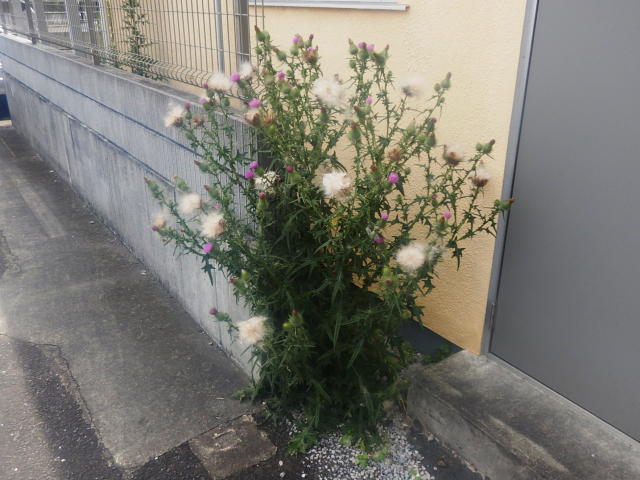 アメリカオニアザミ 開花〜結実の大株(7月上旬)