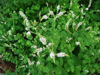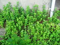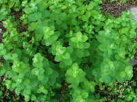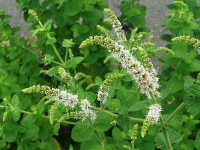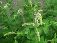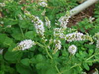特徴:葉は円形でシワが多い。花はシソに似て白い。葉を擦ると強い香りがある。園芸種が野生化。ミント類の中では、最も生育旺盛