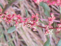 | 多年草 草丈:40cm〜60cm 花期:5月〜6月 生育場所:空き地、野原など 特徴:茎が赤く、花が段ごとに付く。 名前の由来:荒れ地に生えるギシギシ(茎と茎をすりあわせるとギシギシ鳴る) 。 |