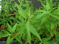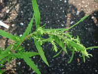 | 1年草 草丈:30cm〜60cm 花期:8月 生育場所:道ばたなど 特徴:粗い鋸歯のある細長い葉。 名前の由来:寄生虫の駆虫薬として佐賀県有田町で栽培されていたため「 参考:アリタソウに含まれる「アスカリドール」という成分に寄生虫を駆除する作用がある。 |