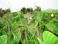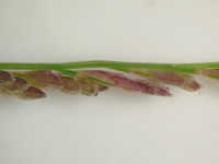 、湿った畑、道ばたなど 特徴:紫色で多数の小穂が付いた花穂