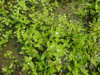 生育場所:水田など 特徴:楕円形の葉で鋸歯はない。薄紫色の特徴ある形の花。