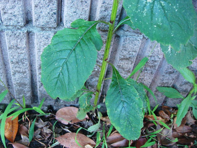 ベニバナボロギク 下部の葉は一部切れ込む