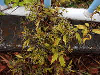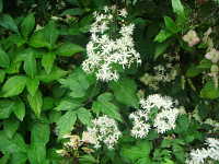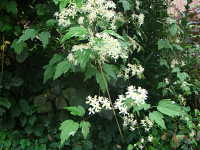 | つる性の半低木 花期:8月 生育場所:日当たりのよい山野など 特徴:4弁のきれいな白花が多数咲く。 名前の由来:葉の形が |