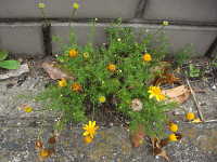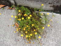 特徴:小さな黄色い花と針のように細い葉。園芸品種が野生化。
