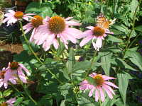 | 多年草 草丈:30cm〜80cm 花期:6月〜8月 生育場所:道端など 特徴:赤紫色の大きな花で、頭状花は盛り上がり、舌状花は下向きに咲く。 名前の由来:属名がエキナセア。和名は「ムラサキバレンギク」。欧米ではハーブティーとして飲まれる。 |