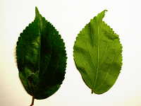 | 落葉高木 樹高:10m〜20m 花期:4月〜5月 生育場所:道ばた、空き地など 特徴:葉の上半分に鋸歯がある。 名前の由来:材がやや硬く裂けにくいため、道具の「 |