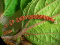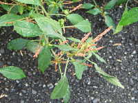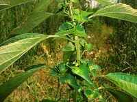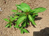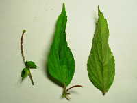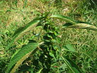| 1年草 草丈30cm〜100cm 花期:7月〜9月 生育場所:畑、道ばたなど 特徴及び名前の由来:エノキに似た葉。赤い花穂が総包ごとに付く。 |