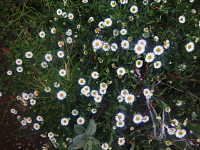 | 多年草 草丈:20cm〜40cm 花期:4月〜10月 生育場所:庭、道ばたなど 特徴:花弁数の多いこぶりな白い花を多数咲かせる。和名は「源平小菊(花色が白色から咲き終わりはピンク色に変化)」で、ハルジオンの仲間。 名前の由来:エリゲロンは学名。ギリシア語で早いという意味の「エリ」と老人という意味の「ゲロン」を合わせたもの。早春に咲いた花が老人のような綿毛をつけることが名前の由来。 |