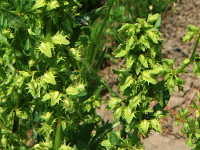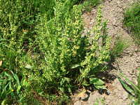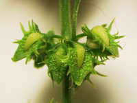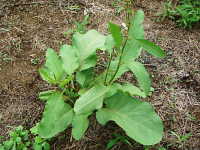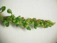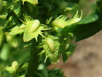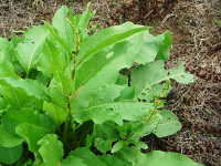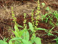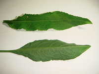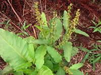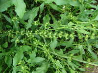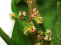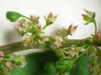 特徴:大型雑草で、葉の中央脈は赤みを帯び、果実の翼にはギザギザがある。