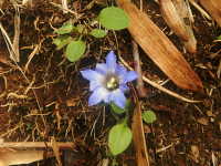特徴:きれいな青紫色の花が、地面すれすれに咲く。