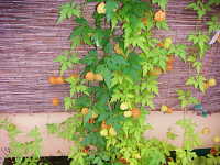 生育場所:庭、道ばたなど 特徴:つる性でホオズキのような果実が多数付く。園芸種が野生化。