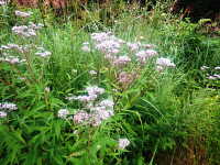 参考:本来のフジバカマは絶滅危惧種であり、園芸種(フジバカマとサワヒヨドリの雑種)が野生化したものが見られる。秋の七草の一つ。