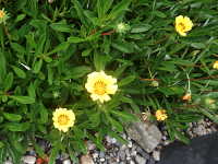 特徴:黄色い鮮やかな花が日光が当たると開き、曇ると閉じる。葉は細長い楕円形で、葉裏は白い。